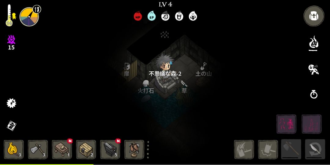 另外妖精商店的背包前期如果资源有所多余可换大背包(18~20格)、次元袋(腰包,20格)、药水包(腰包,14~?格)。料理包可换可不换,卷轴包没必要换。在资源不是比较充裕前有实在多余的东西可以丢地上。建造ガコ(看起来像桶子)然后升级为箱子之后可以建造仓库在里头建造箱子方便物品存放。分门别类放好可以节省很多时间。(需要铲子挖黏土)