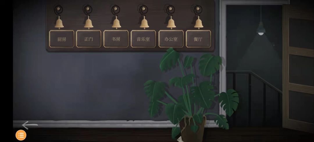 向左滑动,来到别墅,进入。玩家一:打开门,下滑下楼,点开酒塞,点击绳子,点击右侧玻璃罐后的壁虎,等它爬到左侧后,再次点击,直到壁虎进入笼子。至此三条信息全部出现。玩家二:花盆下纸条得知,需要按规律敲铃铛才能进入下面的场景。