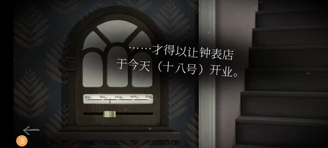 玩家一和玩家二都可以看见收音机,调频,相互沟通,先是玩家一后为玩家二,得知线索。玩家一:得知现在是三月。玩家二:得知雷文钟表店今天也就是18号,开业。向上滑动,看见报纸,得知今天是周三。