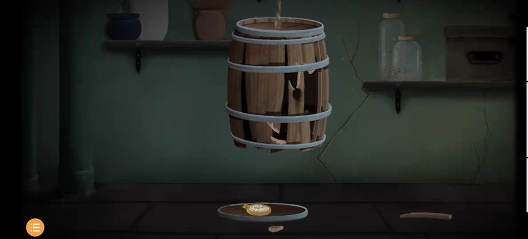 来到地下室,多次点击木桶,直到怀表落下。观察怀表,分针依次指向12、15、12、12、12、15、30。