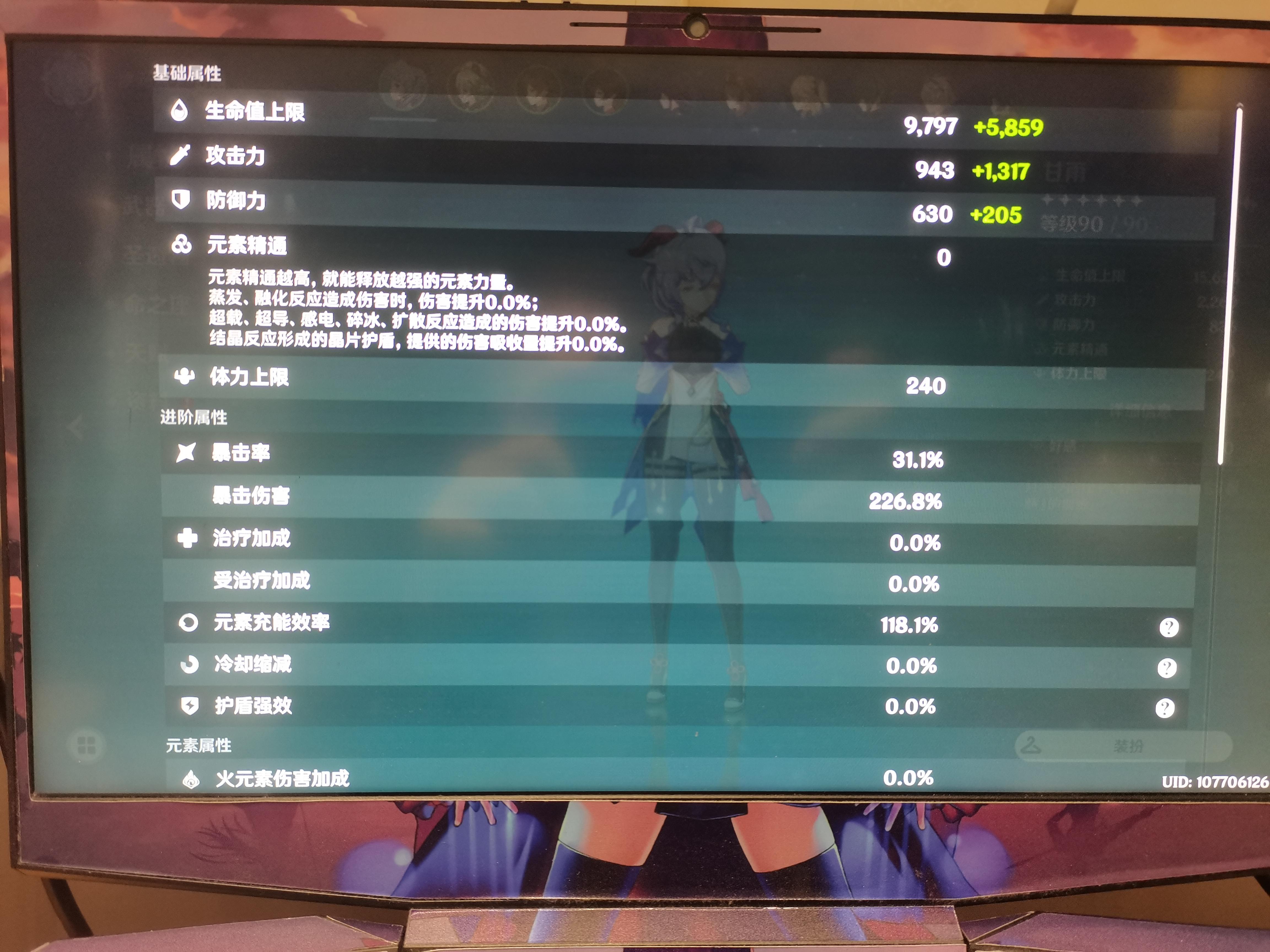 零命甘雨,一精阿莫斯,冰套,面板如图,为啥我的伤害一箭过去才只有4w多?很是奇怪。双冰阵容也就4w将近5w