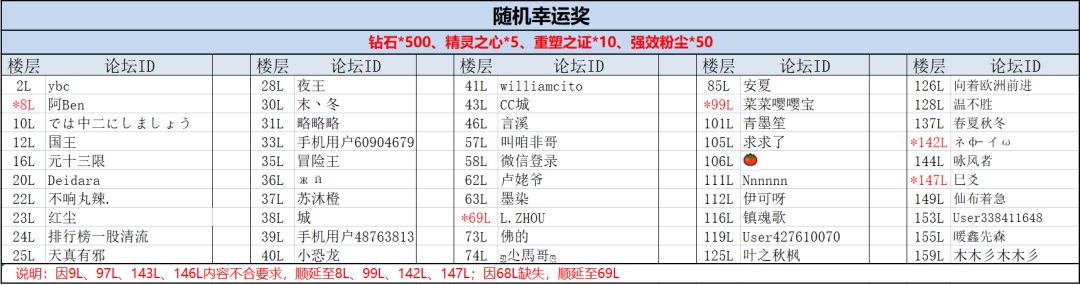 那就快来看下我们的活动抽奖结果吧!首先是本次活动的最佳阵容推荐奖。恭喜这位玩家获得免广告券*50、钻石*500、精灵之心*5、重塑之证*10、强效粉尘*50