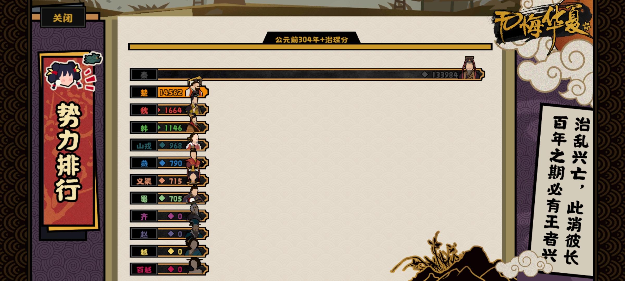 说到这里,我提一句,战国这个本大家应该都有体验,有些 民心太低 的国家会 自己覆灭 。