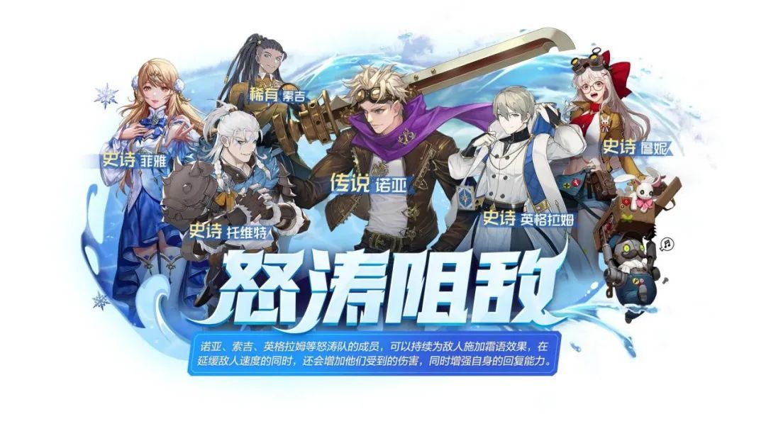怒涛队伍特点:怒涛队的减速效果和冰冻效果,可以大幅降低敌人的活动频率,持续的“霜语”和“冰冻”可以为输出型幻灵提供稳定的增伤效果。