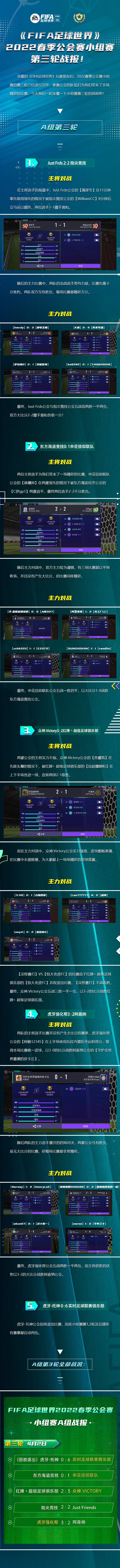 《FIFA足球世界》2022春季公会小组赛 第三轮战报: