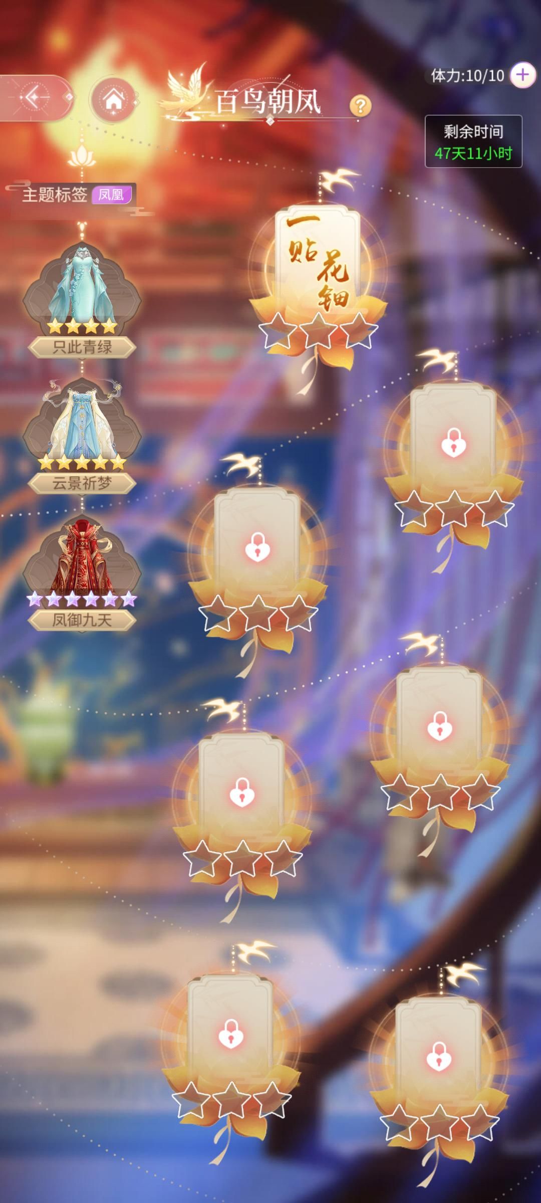2、有凤来仪关卡需要按照顺序通关,上一个关卡未通关时,无法进入下一个关卡。