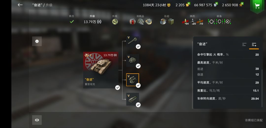 得益于并不胖的体重和600马力的发动机,奋进以39的前进速度成功卫冕五级房重坦第一跑车的称号(虽然都快不到哪去),突然出现在中坦线一线的奋进一点也不奇怪。