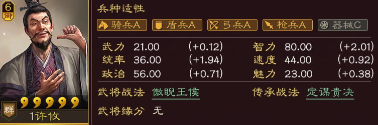 因为共存,这里选择了走连击路线,孙权、太史慈、许攸,3个武将每回合能打4-6下(许攸的奇正相生建议点出),一般来说,能够比较稳定地在4回合左右就触发完破绽。