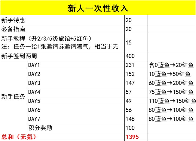 本贴统计仅包含红鲷鱼及邀请券,零氪和氪金收入均已列出,不包含各种氪金礼包。本次统计以当前活动奖励为标...