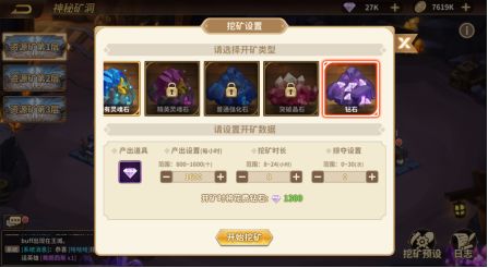 玩家们拿出一定数额的钻石,通过设置产出和挖矿时长来获取一定的钻石收益(押的钻石越多,最后收益也越高)。