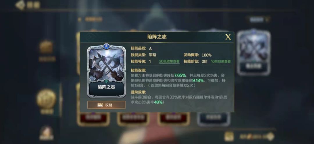 1.作为一个军略技能, 陷阵之志可以说是担任北条队以及反击队中的佼佼者,该技能满级20级