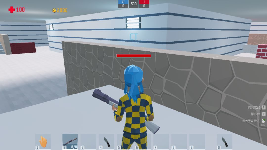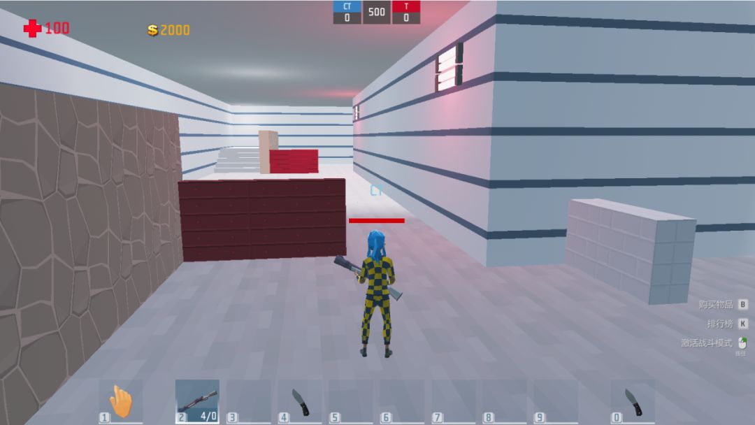 注意游戏左上角的HP提示,满血状态为100,归零时会被淘汰。其次在旁边挨着的是你当前的金钱剩余额度,通过【B】按键打开商城,可以看看自己能购买哪些道具或武器。