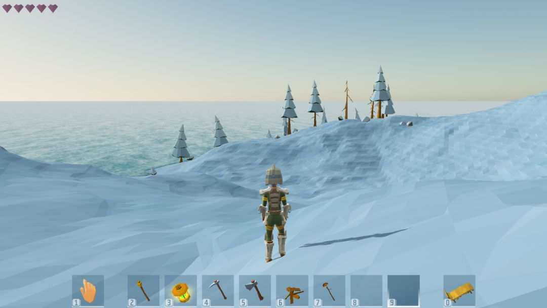 由于极地岛屿大多常年被冰雪覆盖,所以树木植被会比较稀少,建议大家在树木较多的位置安营扎寨,同时再多收集些原木进行存储以备不时之需。