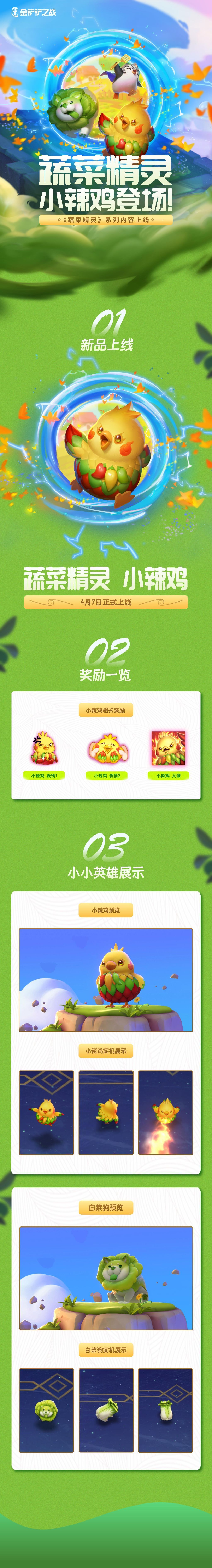 弈士们翘首企足的蔬菜精灵 小辣鸡已于4月7日在游戏内登陆!让我们来了解一下【蔬菜精灵 白菜狗】与【蔬菜精灵 小辣鸡】的获取信息叭~