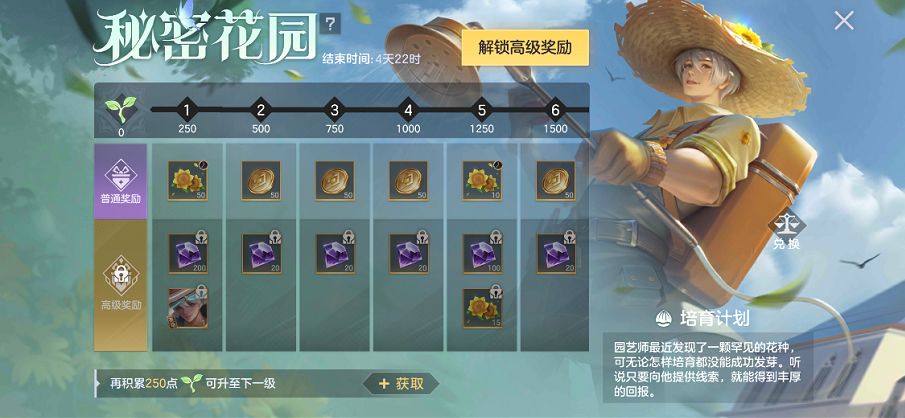 【活动形式】参与秘密花园活动,完成任务,收集道具【希望之苗】,领取【太阳花】兑换惊喜皮肤、头像框、英雄、道具等奖励。