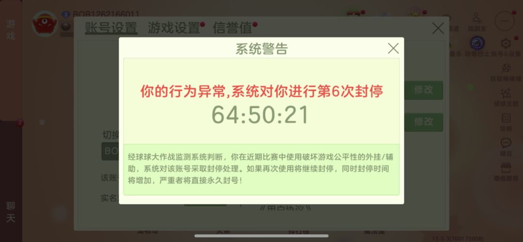 不是为什么无缘无故就给我封号30天啊,我明明什么都没干就打了两把游戏,说什么我破坏游戏平衡,我干什么破坏游戏平衡了??球球名称天使之恋2913,望官方大大明查