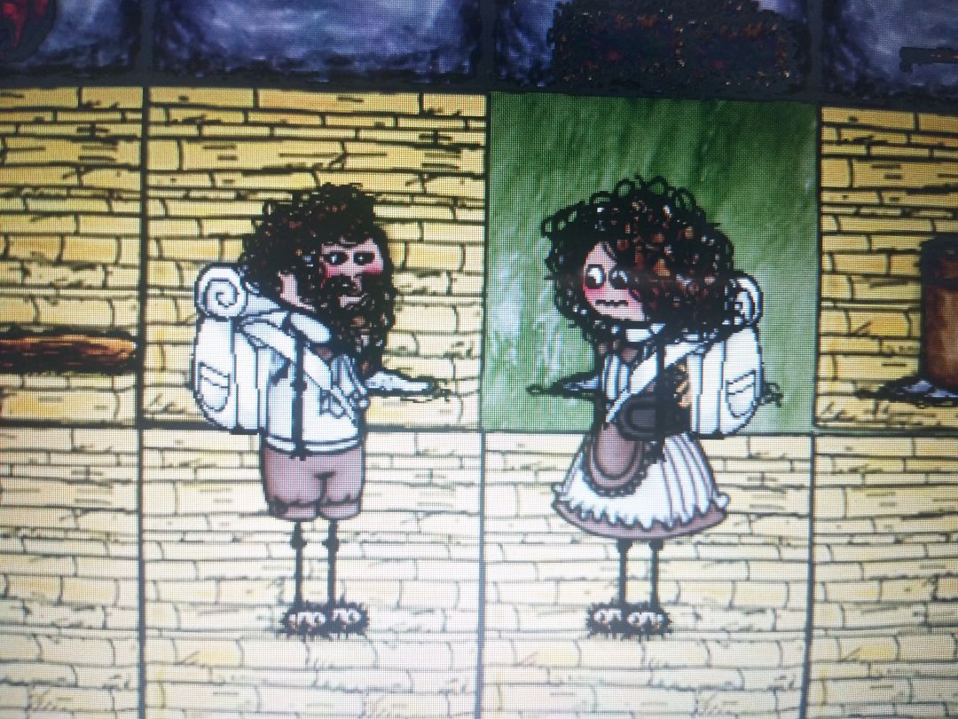还不会高炉打铁的时候,靠捡石灰石赚的钱,买了跟男朋友一起穿的情侣新衣服(没钱买鞋子了~)