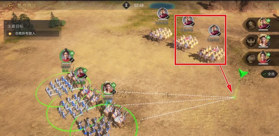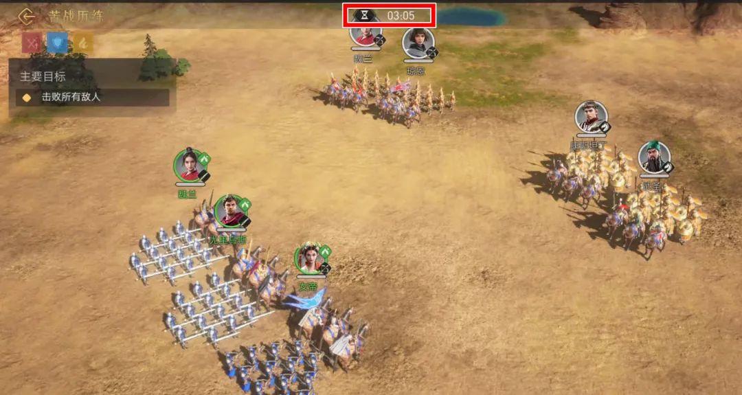 关卡内有多支敌方部队时,可以根据兵种克制逐一击破,由于在玩家部队靠近后敌军会主动进攻,所以需要控制好距离勾引出一两支队伍,战胜后再清除余下队伍,比起一股脑扎入敌阵同时面对三四支队伍要轻松得多,不过期间也需注意挑战时间。
