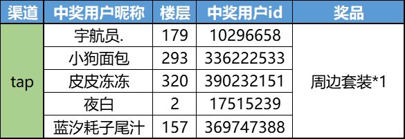 请以上玩家联系工作人员领奖并提供邮寄地址,加入QQ群788456430,备注为“taptap+论坛昵称+论坛id号+赛尔计划招募活动”