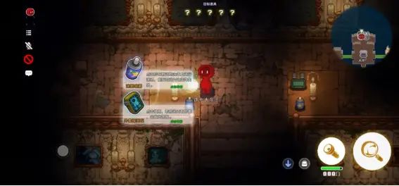 在进入游戏后,潜入者可以挑选携带心仪的道具,根据右上角小地图的指示,前往宝箱处尽快解开谜题获得宝石。不同地图中,可获得的道具稍有不同,而利用好道具特性,可以更快的协助团队取得胜利。(ps:还请仔细阅读每一个道具的用法哟~)