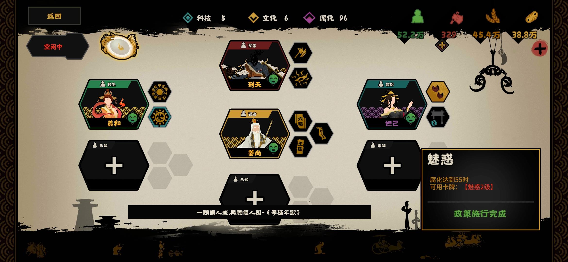 这套阵容在“三皇五帝”.“夏商周”都很好刷,获取途径也简单,天.地.人卡都有,综合能力也强于之前带管仲的纯经济流速推,我之前还是低估“魅惑”这个技能,不单单只是个控制技能,还能有效的反制对面的很多技能和克制一些冲锋兵种,配合一些爆发流的兵种效果比刑天的“狂战斧”阵容更实用且不需要重复研究,具体的实战效果视频在下方链接,感兴趣的可以去试试,我的第一个五星阵容就是这个了。【妇好的替代位是刑天,喜欢更加暴力的可以试试,游戏体验爆炸!】