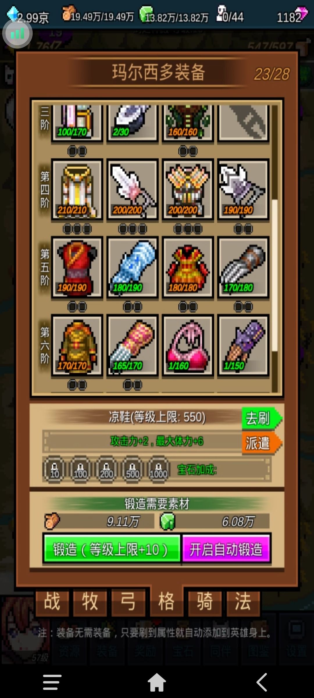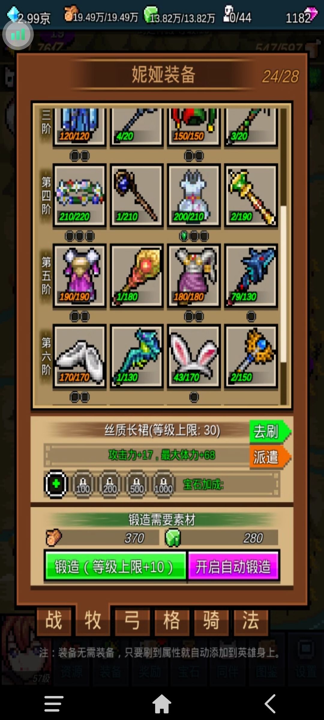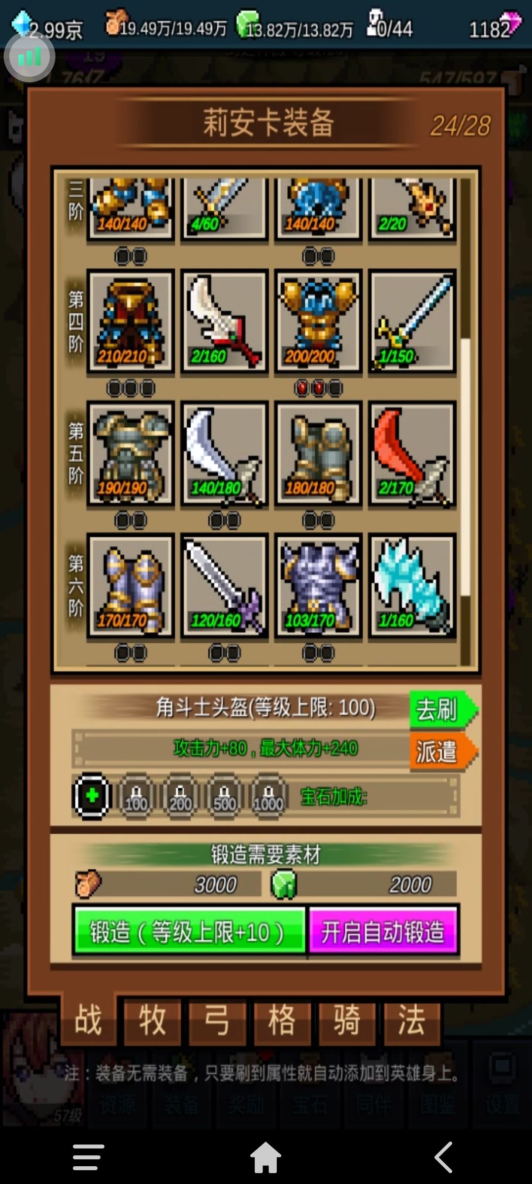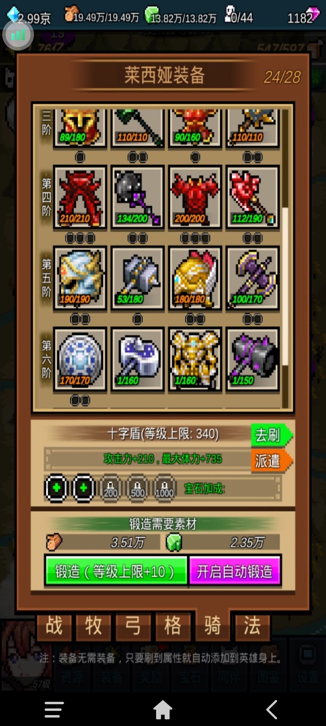 3、前24关必须将战、牧、拳、骑、法的神殿升到5级。因为挂机刷图必须尽可能的控制BOSS。