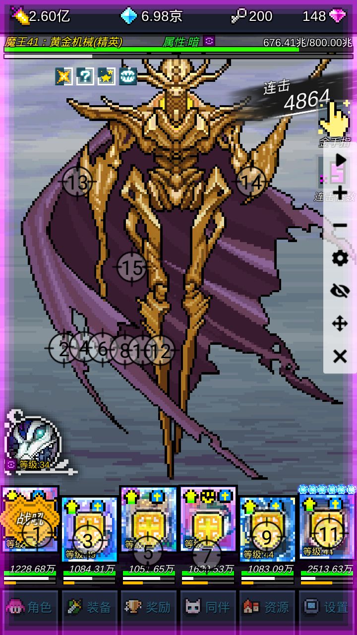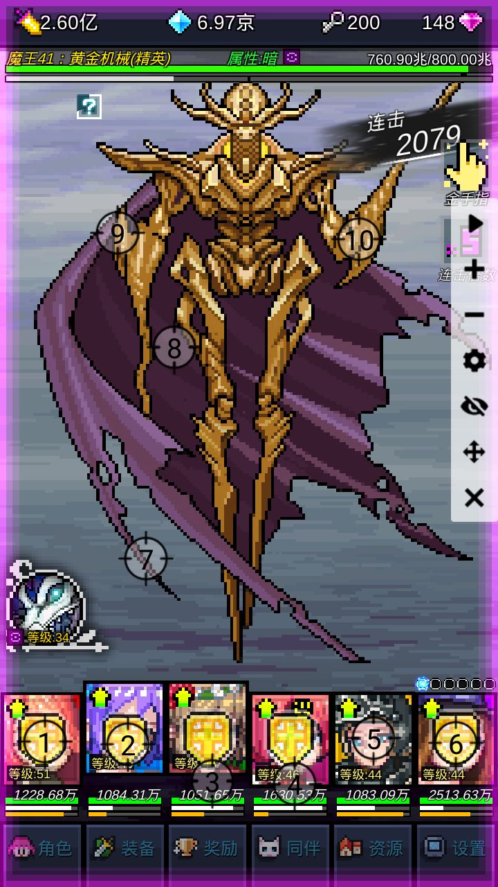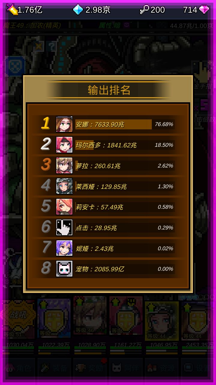 46关-水-2570兆:建议全部角色血量过500万,并且法师攻击力1亿。