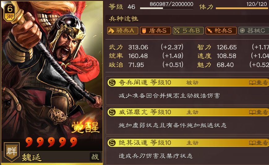 不过面对草船等战法的时候,没有优势,全看魏延发动情况了。因为说解就解了,沮授加不加1回合,差别不大。