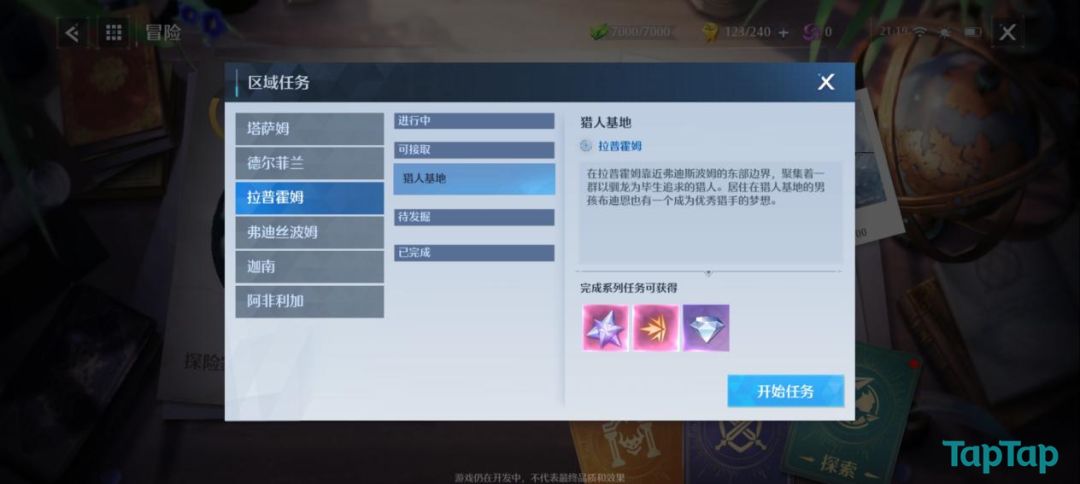 首先,在每个区域我们能够接到三个等级的任务,而区域任务往往和相对应的阵营声望挂钩,塔萨姆地区任务对应多米诺商店即守护精灵声望,德尔菲兰平原对应国王商店即光明骑士团声望。拉普霍姆冰原和弗迪丝波姆冻土对应冒险商店声望,迦南山脉对应时空商店即思维殿堂声望。