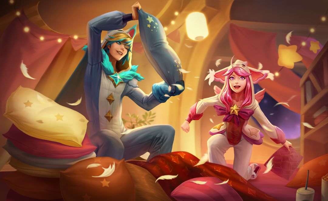穿着睡衣的拉克丝和会扔枕头的伊泽瑞尔不但风格可爱,还是全技能特效哦!