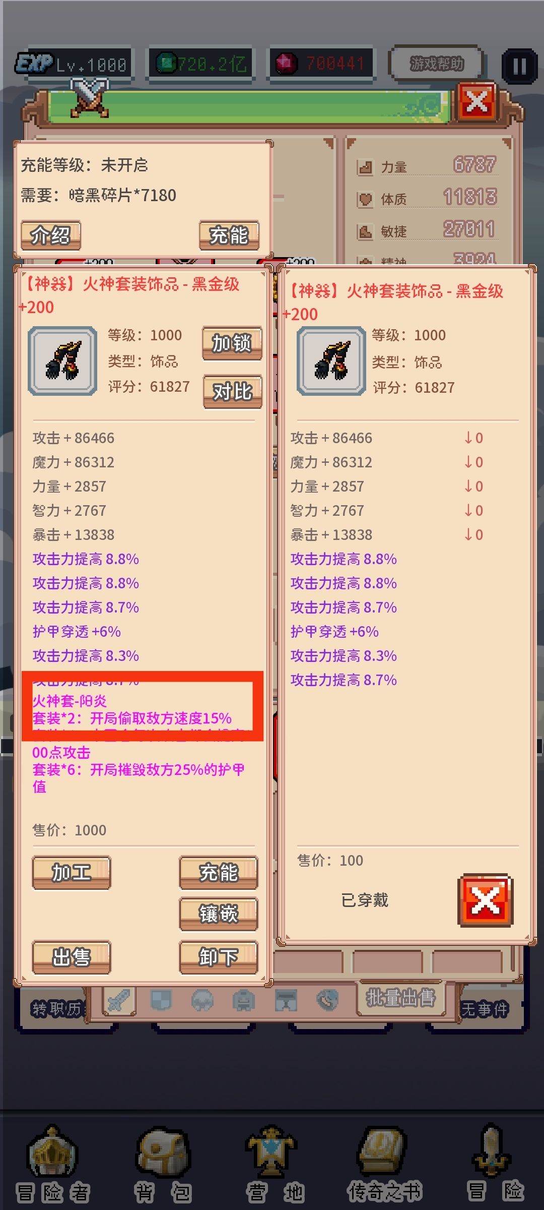 而锦上添花的是火神套里的阳炎与火冠,分别可以偷敌人的速度及增加伤害,无敌!(装备不是关键,可以换熔岩、剑王各种套装)
