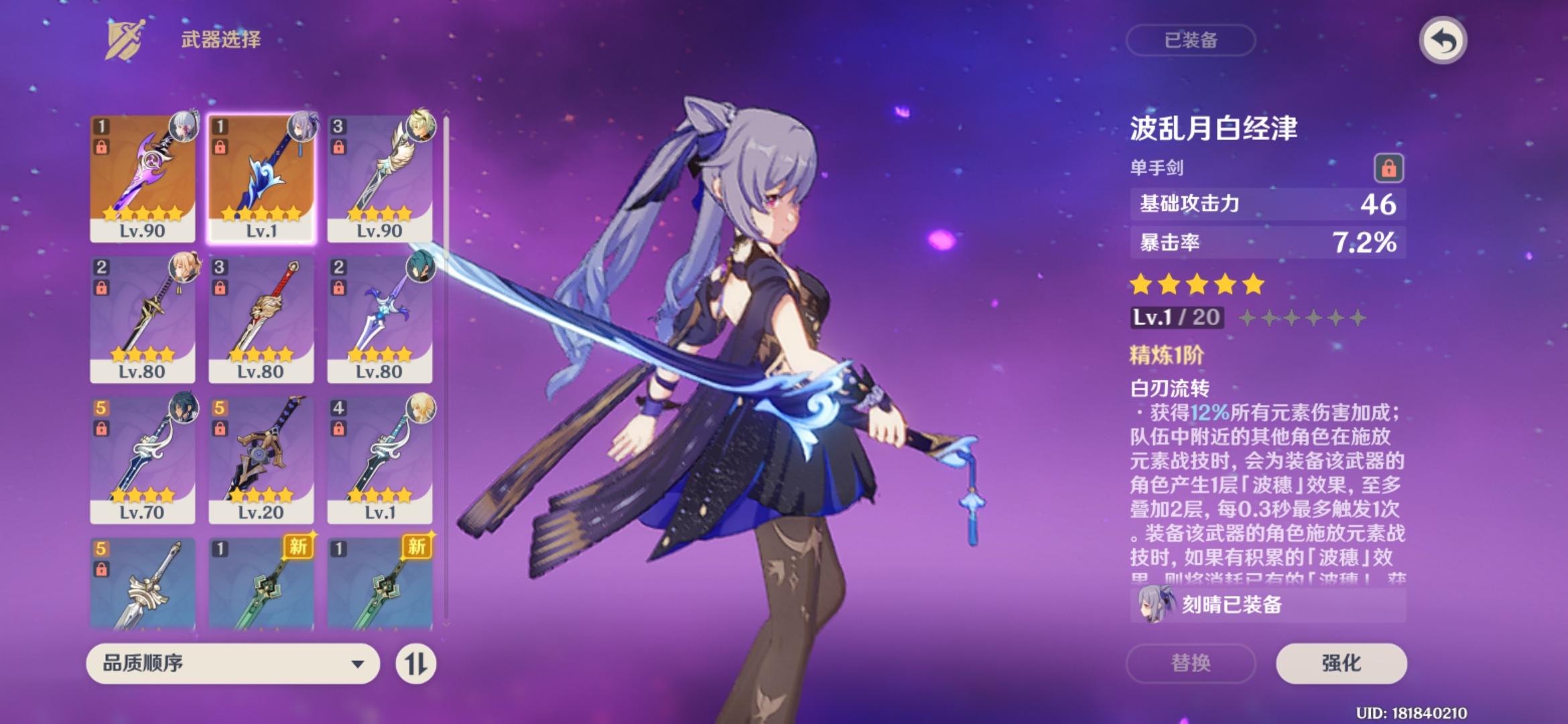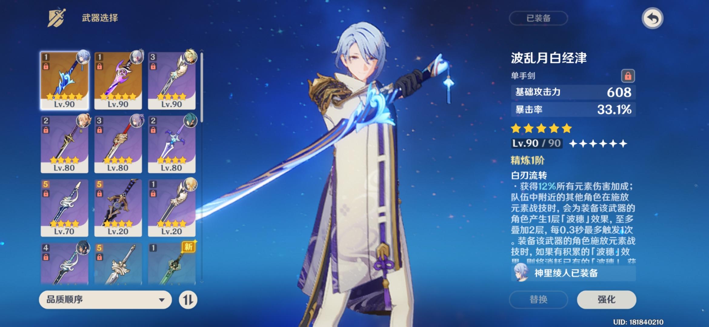 绫华也不能用这武器,用了就只能带2+2了。试了一下攻击头2500攻击72暴击176暴伤 才13000,雾切2500攻击36暴击220暴伤1w6。