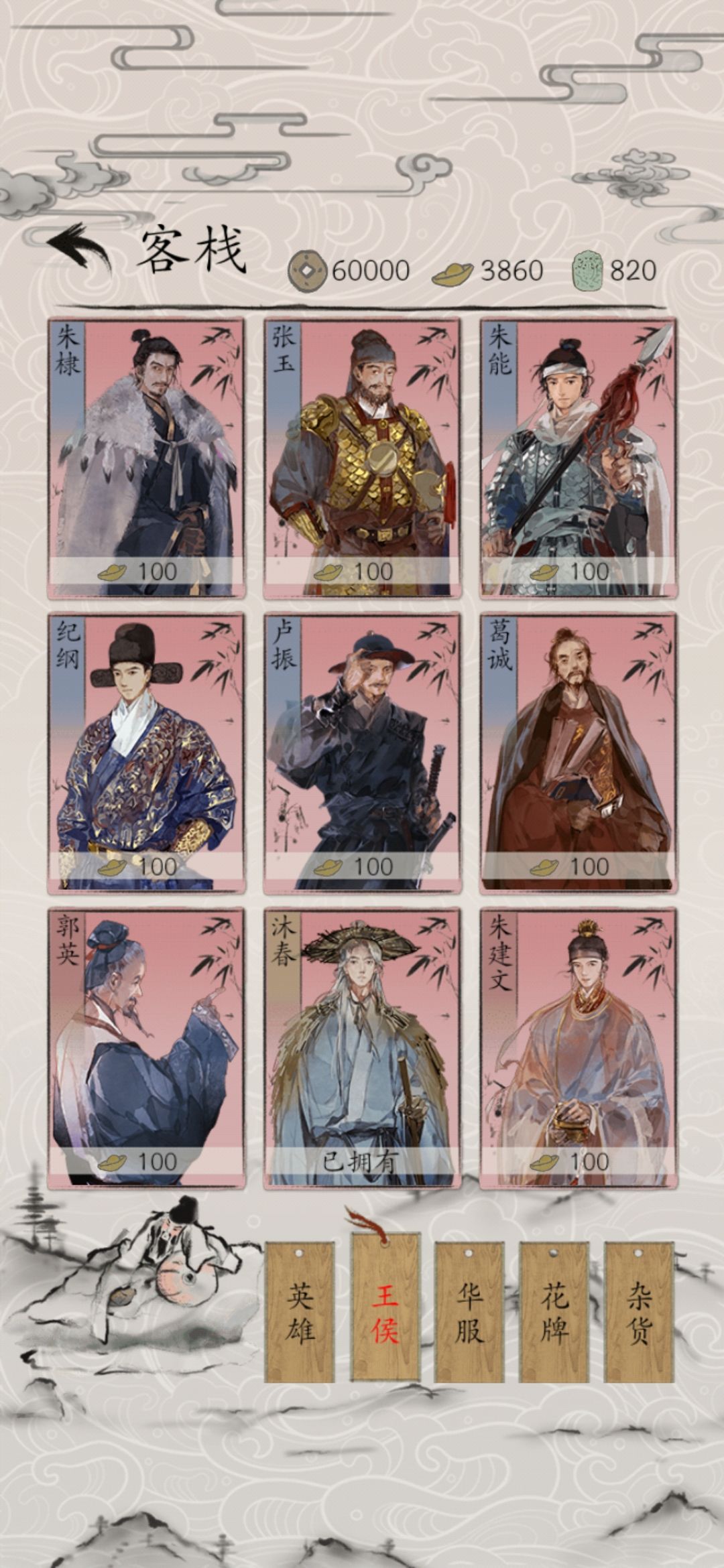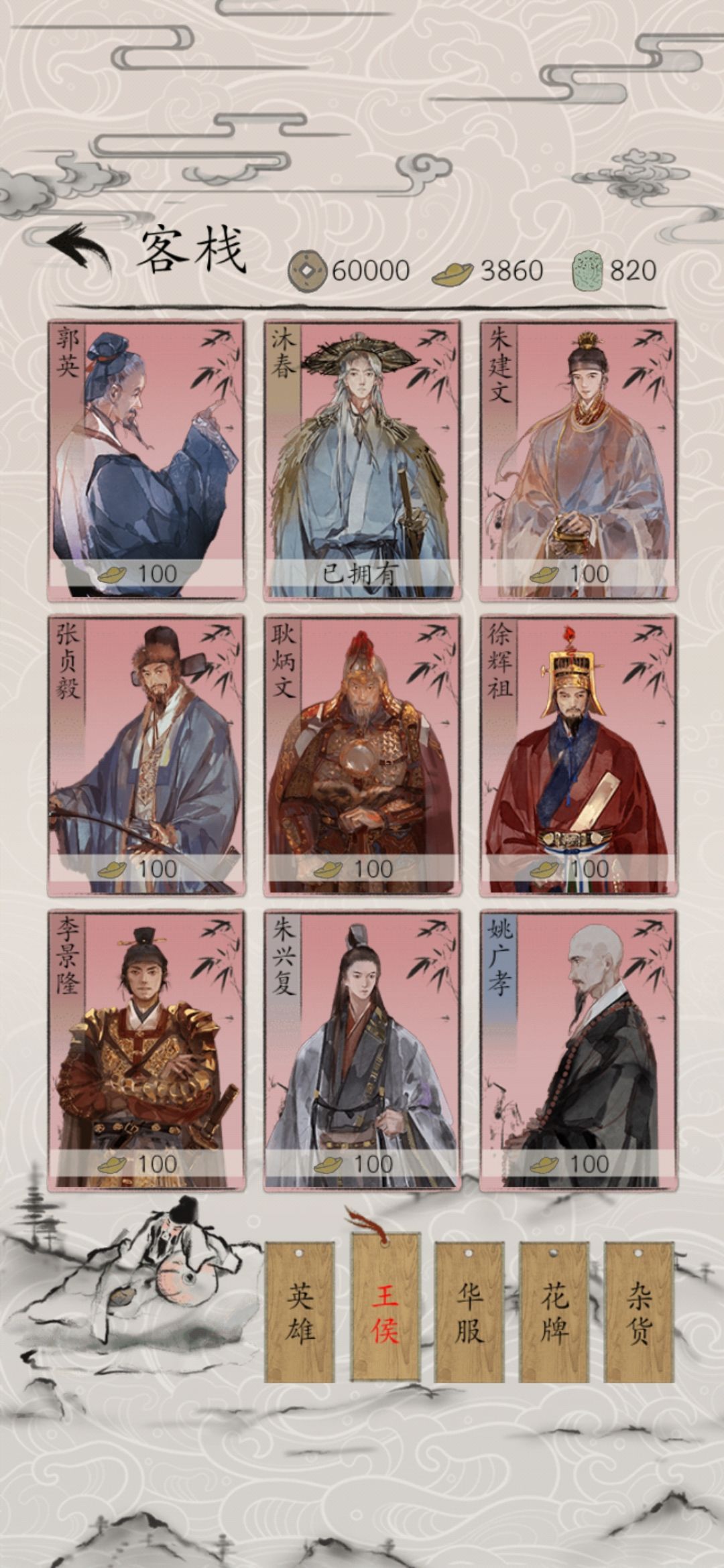 《包晓生英雄传》目前有15位王侯卡,他们是历史上的著名人物,在游戏中从到NPC和BOSS的角色。历史人物可以被收录,无法加入卡牌构筑。所以玩家需要注意王侯卡抽到后,只可以解锁传记、头像和图鉴,但不能加入牌组的哦。首测阵容15位王侯卡分别是朱棣、张玉、朱能、纪纲、卢振、葛诚、郭英、沐春、朱建文、张贞毅、耿炳文、徐辉祖、李景隆、朱兴复、姚广孝。