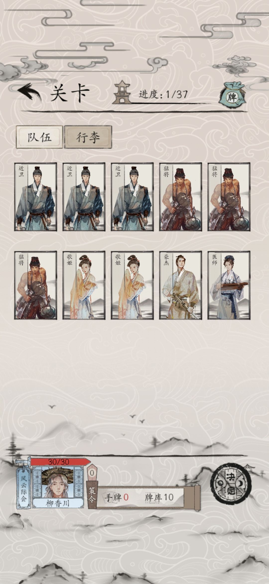 此外还有5位侍从,分别是近卫、猛将、歌姬、豪杰、医师,这些卡牌作为基础牌,可以重复上阵,而其它英雄牌,则不可重复上阵。
