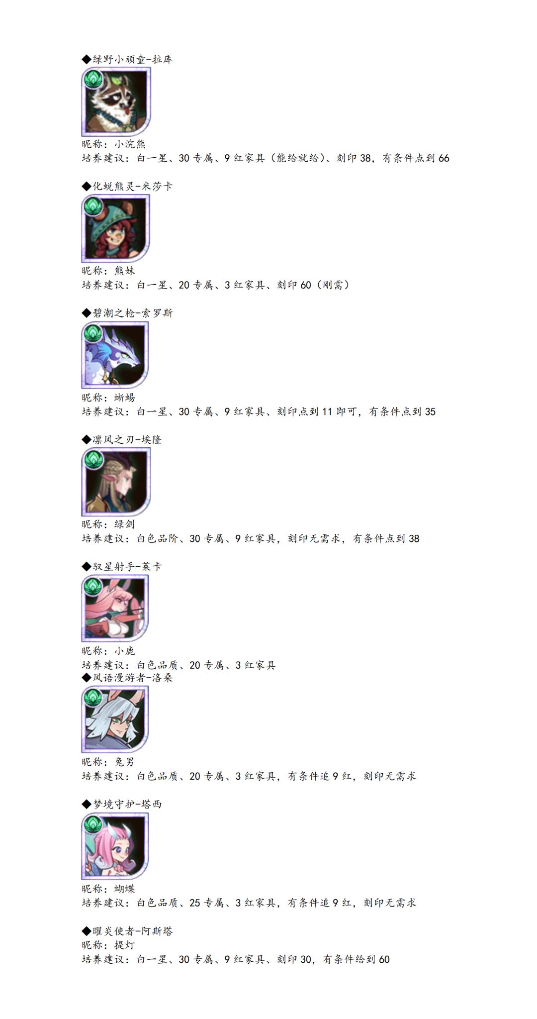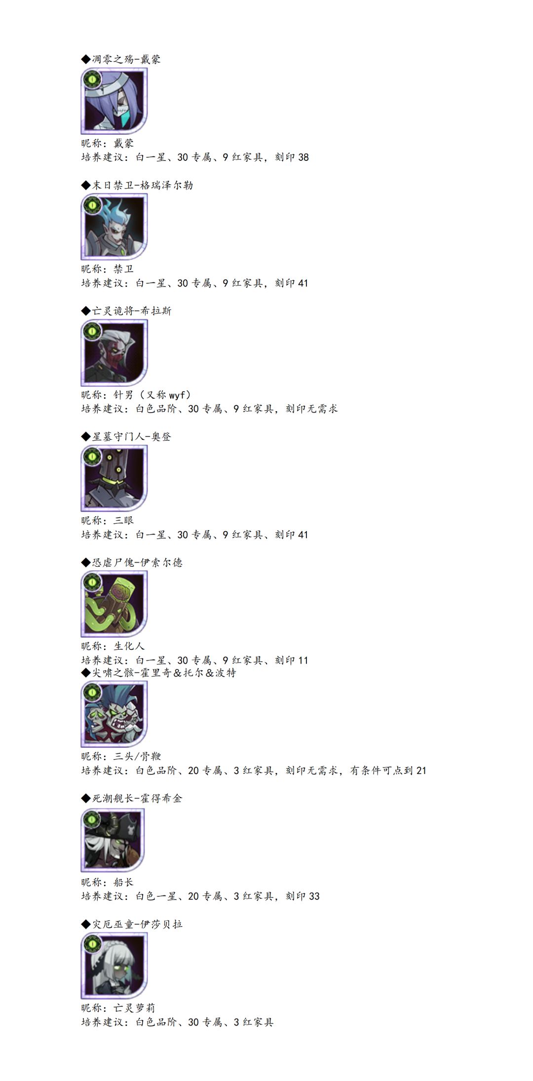 注:由于诅咒梦境每期都有变动,故在此不做固定阵容的推荐,而是针对每个种族可培养的英雄给出资源投资建议。