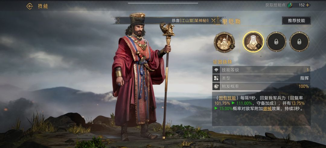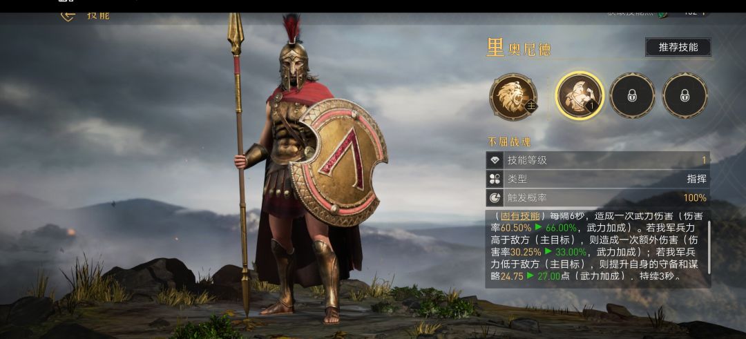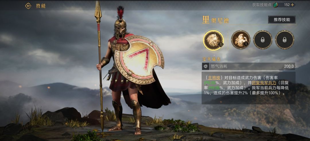我们可以看到里奥尼德有着很强的伤害和回复技能,并且二技能当我放兵力高于对方可以额外造成一次伤害,低于对方可以增加我们的双抗