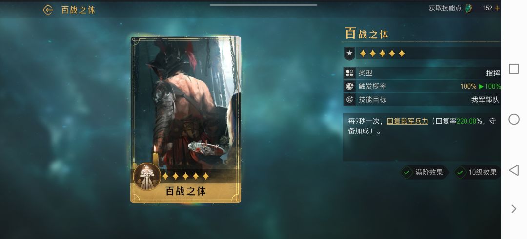 达理厄斯:百战之体+不屈信念(百战之体受到守备加成百分百触发,不屈信念使得我们每次受到敌方高额伤害时可以减少受到的伤害)