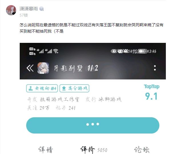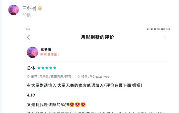即日起在TAP游戏评价区,为【月影别墅】艾尔线&该隐线最近的 剧情更新 写一段自己的评价,提供您的感想、意见和建议,并截图评价时自己的ID和开头内容,带图发送到本PV评论区,即为成功参与活动。