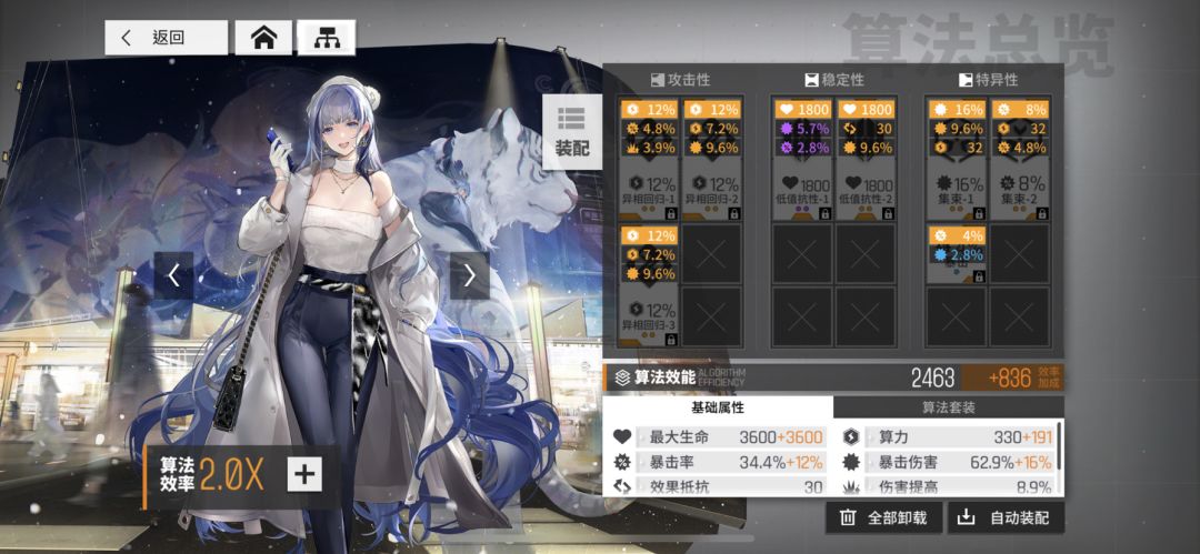 (4)算法:着重说算法,这也是游戏后期的主要内容,算法的搭配每个人形各不相同,建议自己在论坛或b站找,当然你问的话也会被回答的(看攻略注意看时间哦,有些过去的理解在现在未必适用)。