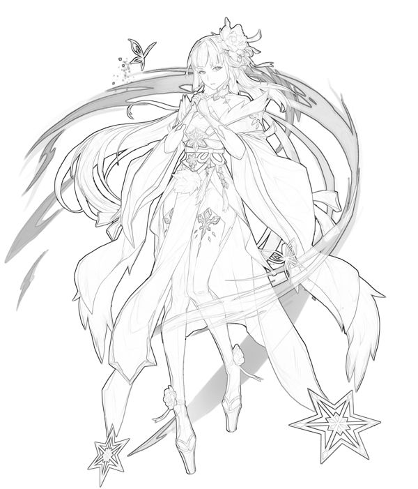 昨天上班的时候,趁着原画小哥去上洗手间的空隙。瞄了下他正在创作的角色。不过还没上色,还是线稿阶段~
