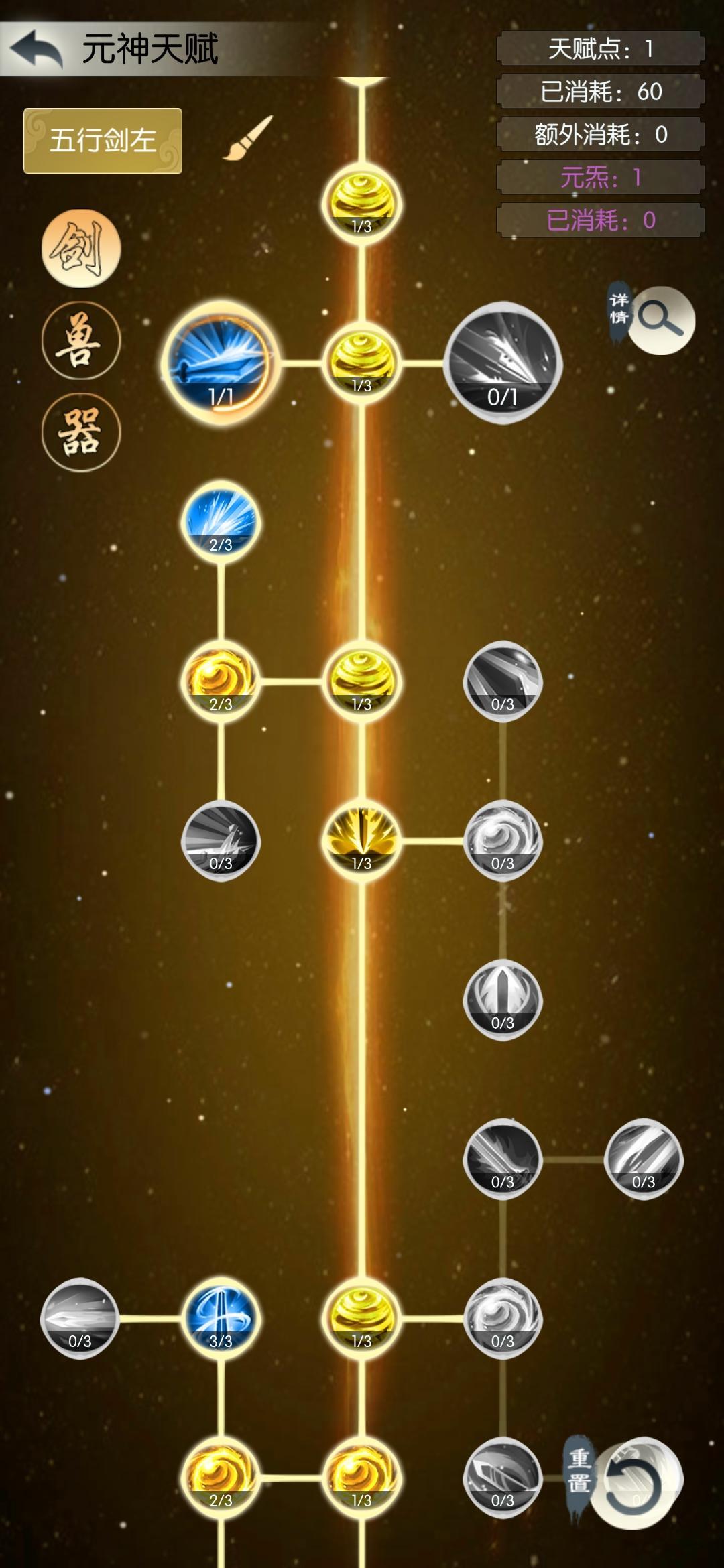天赋:剑左点出防御和减伤(天赋左边的剑气透骨和剑气漩涡,有条件点满)