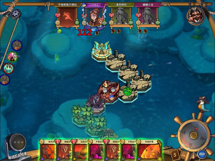 3、打乌鸡,这个是最好玩的,一般打伪共舞乌鸡的话,都会开局给我们来一点魔语,然后一下子把魔语抽走,我们只要在红岛叠护罩然后等着绿岛的时候乌鸡把魔语丢掉后,快来拉红就行