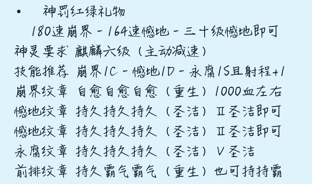 气奥:持久强力(看需要搭配,但血量一定是队伍最低的)暴怒或者重生