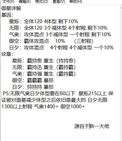 气奥:一两个射程,一两个体型,一定要比日夕体型大比无限小余下10纹章效果,小基因体攻混点