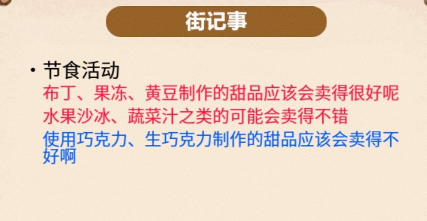 总而言之,其实就是负面效果有没有差不多,就是让你做增益效果街记事时不要含负面效果食材。(感觉很少有负面街记事)还是能用水果店就用水果店出售带水果商品,能完成增益效果街记事就完成。