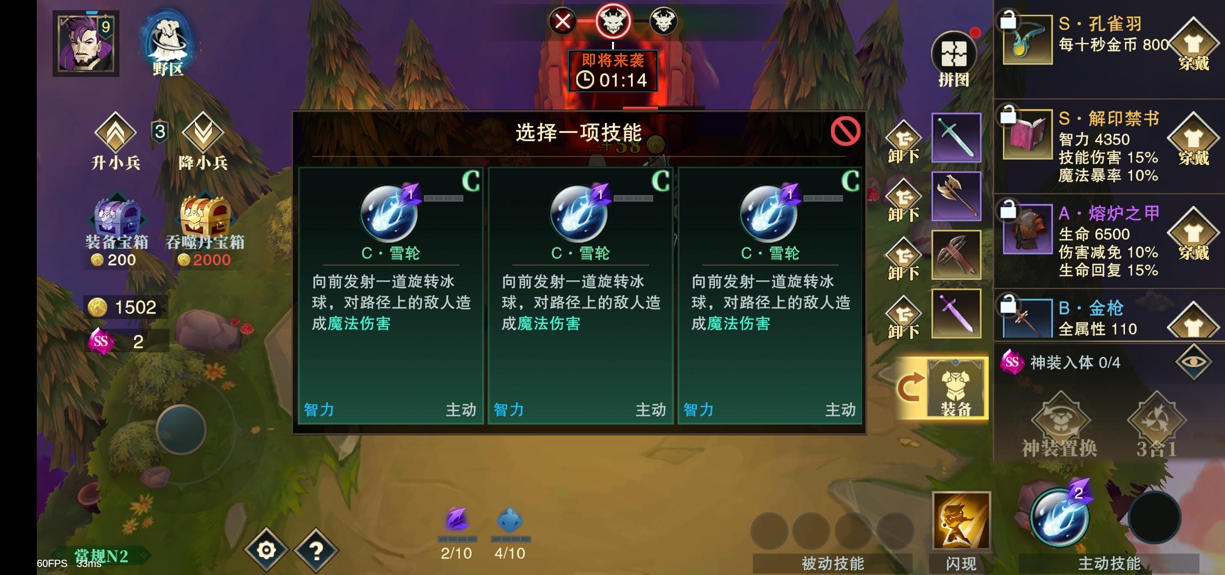浅谈一下个人看法 附上刚玩的截图 看到一款参考魔兽的游戏登录手机还是很高兴的 去体验了一把 第一局打的是N1 在体验之前看了一眼评论 大家都再说智力英雄的装备多以及伤害比较高 所以第一局选择了一个智力英雄 因为魔兽地图玩的比较多 看一眼游戏画面就知道如何操作 第一局很顺 可以说非常的顺利 新手体验福利还是怎么 开局出的被动技能以及主动技能书里面 都有智力加成的技能 导致打的是非常的快 而且装备掉落的概率也很大 到最后打死N1的第三个BOSS也就花了11秒的时间 期间正好凑齐4件SS装备 而且都是攻击性的 算是很好的体验 唯一美中不足的就是 金币等级5级太低了 像刚刚的N1到后面5级金币都是一下秒 完全可以增加一个上限制 然后 我开了第二把的N2 想着选择了一个物理性的英雄 被动伤害加成也是物理性 从头到我退出游戏 我所有的技能书 没有一个被动技能 没有一个主动的物理伤害技能 我一度以为是概率问题 或者是技能书根旁边的宝箱挂钩 接连攻击了几次200金币以及2000金币都没有掉落技能书 导致这局就属于平A 技能来的也都是智力 而且是同一个技能 下图就是 所以我想在这里根作者提议下 要么单独开设一个技能宝箱 要么就把技能书的概率添加到金币宝箱内 我从头到尾都不知道这个技能书怎么掉落 只有遇到BOSS掉落过 或者地图升级还是我升级的时候掉落了一次其余就是我在平A 魔兽的地图有些图的被动技能比你主动技能伤害还要高 但是你这半天不来技能书你让其他玩家怎么体验?全靠运气?改动的地方很多 既然参考了魔兽 不如把人家里面的东西吃透了再搬过来 技能这一方面很多图都可以有个参考 而不是你这种随机掉落 并且掉落的全是智力加成的书 看后续改动会不会改进吧 总之技能要么单独开宝箱买 要么就再小怪 小怪BOSS 野外BOSS身上增加出来。