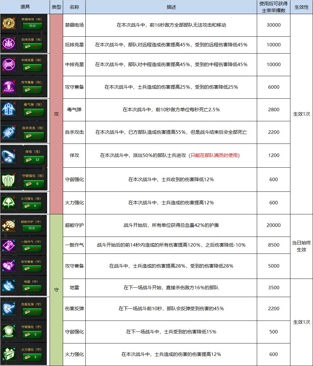 PS: 防守布阵激活的增益属性将在本次活动始终生效,进攻派遣部队使用的增益属性只能在当场战斗中生效。