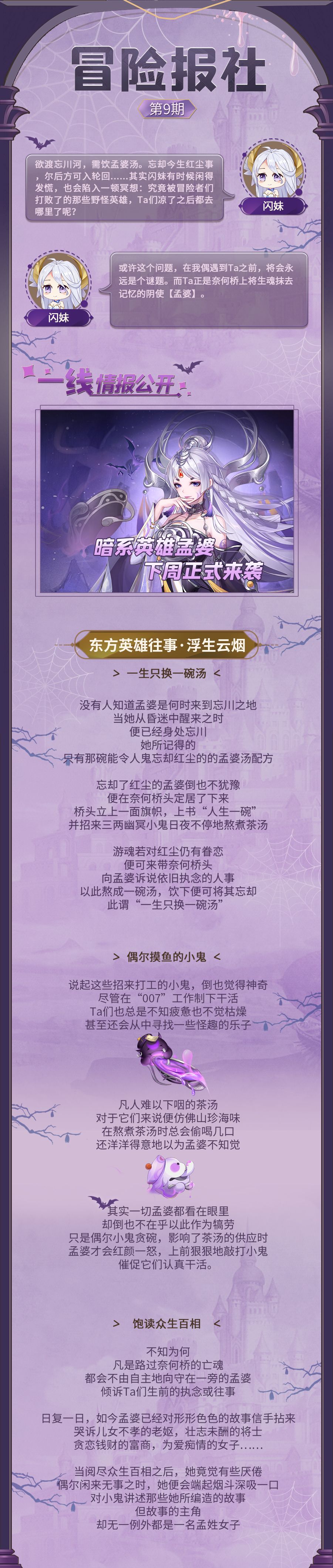 ◆欲渡忘川河,需饮孟婆汤。忘却今生红尘事,尔后方可入轮回——全新暗系英雄「孟婆」将于下周上线!