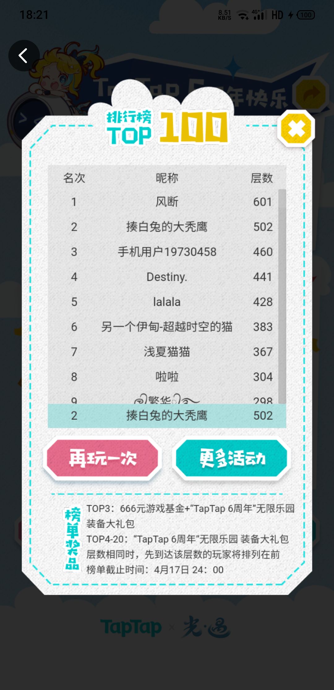 #TapTap6周年快乐# 第一在此!欢迎挑战