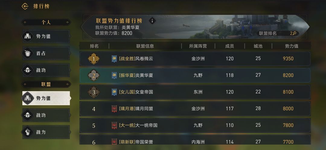 在前几日的统计中,东洲势力女儿国是唯一一个进入前20的同盟,当时排行第三,可见其在落地几乎吸取了东洲所有的高战,迅速发展至第一!